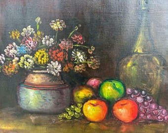 Vintage Original Still Life Oil Painting Flowers Fruits Signed Etsy